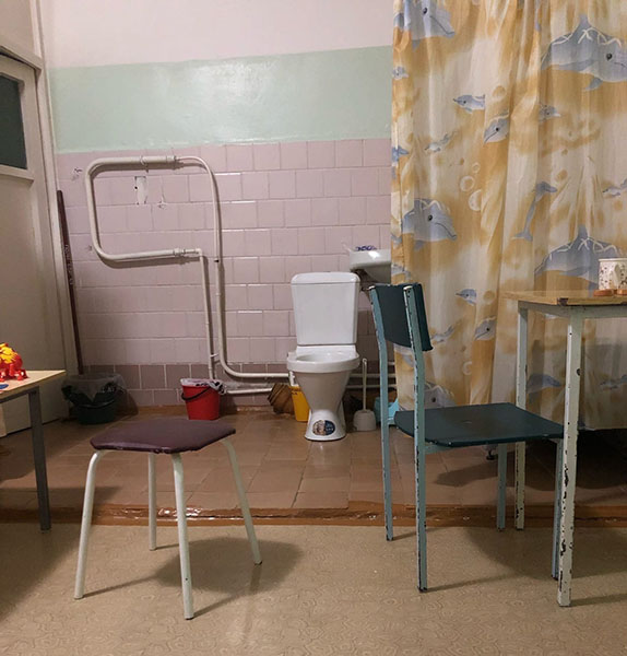 Условия нахождения в палате — просто ужас. Старые кровати, туалет и ванна, которые отгорожены от обеденного стола просто шторкой. Это полбеды, отбывать лечение (по-другому не назовёшь это) ради здоровья ребёнка можно и в таких условиях.