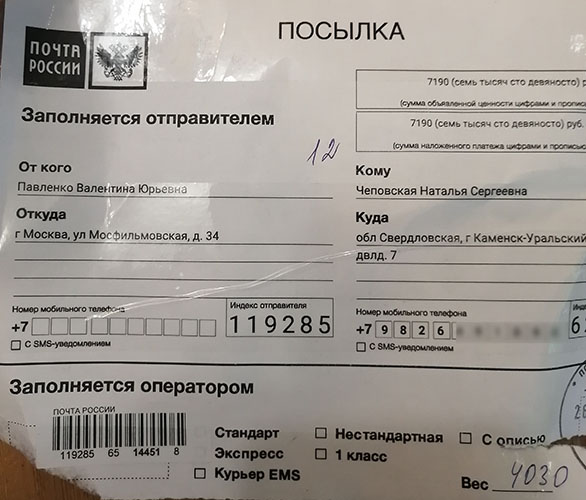 ТОЛЬКО ЧТО ПРИНЕС ПОСЫЛКУ ОТ ВАЛЕНТИНЫ ПАВЛЕНКО!!!! СУКИ ХОТЬ БЫ РУКИ ОТОРВАЛИСЬ У ЭТИХ *******!!!!!! тоже заказал самовар а пришло черт знает что и два палено!!! Понятно что развели,но есть же полицияяяя АУУУУУУУУУУУУУУУУУУ!!!! Или от праздников не отойдут????? И кстати то же отделение 119285 неужели нельзя вычеслить