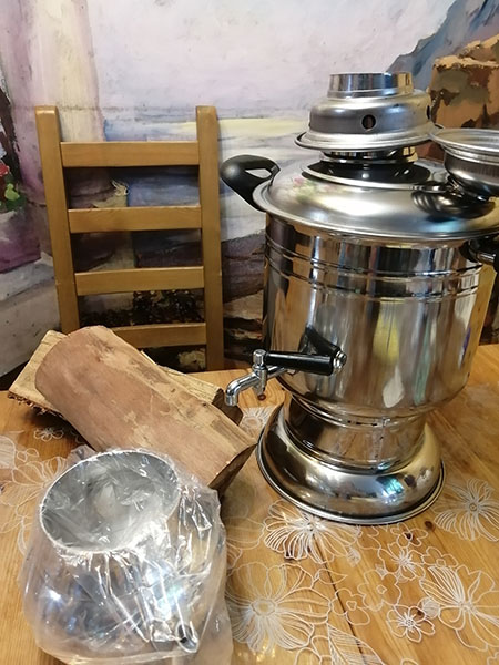 Обычный Самовар Турецкого производства, который есть почти в каждой турецкой семье для отдыха на природе. Горсть углей, ложка геля для розжига и через несколько минут кипяток готов!!!
