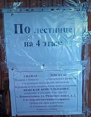 Женскую консультацию временно разместили на 4-м этаже детской больницы. Подниматься — по лестнице.