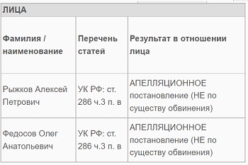 На прошлой неделе Первый кассационный суд общей юрисдикции вернул в апелляционную инстанцию рассмотрение уголовного дела в отношении Федосова и Рыжкова.