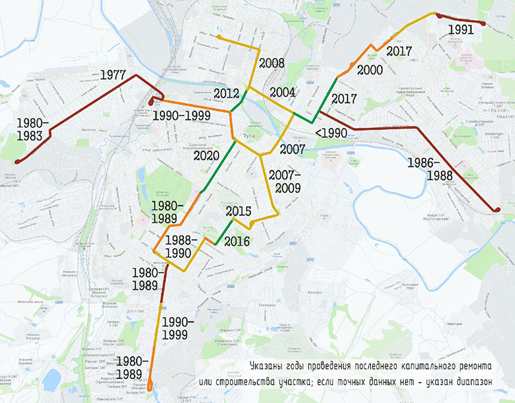 Самое интересное, что именно в самые тяжёлые предвоенные 1920-30-е годы трамвай в Туле был запущен и начал активно развиваться.А сейчас когда бабла до хера,трамвай в Туле находится в ужасном состояние и на грани закрытия.Ведь не могут или просто не хотят поддерживать в нормальном состояние то,что есть.А уж про строительство новых линий я вообще молчу.