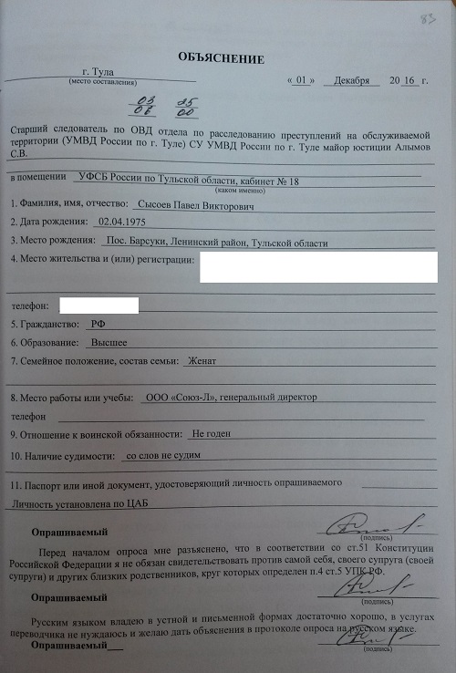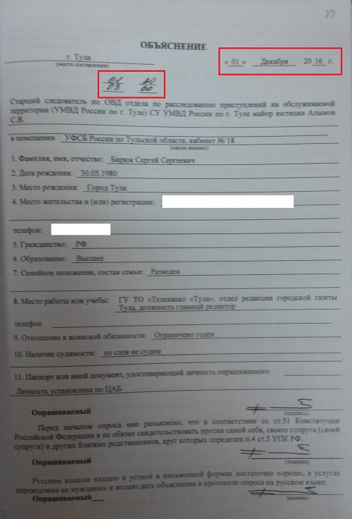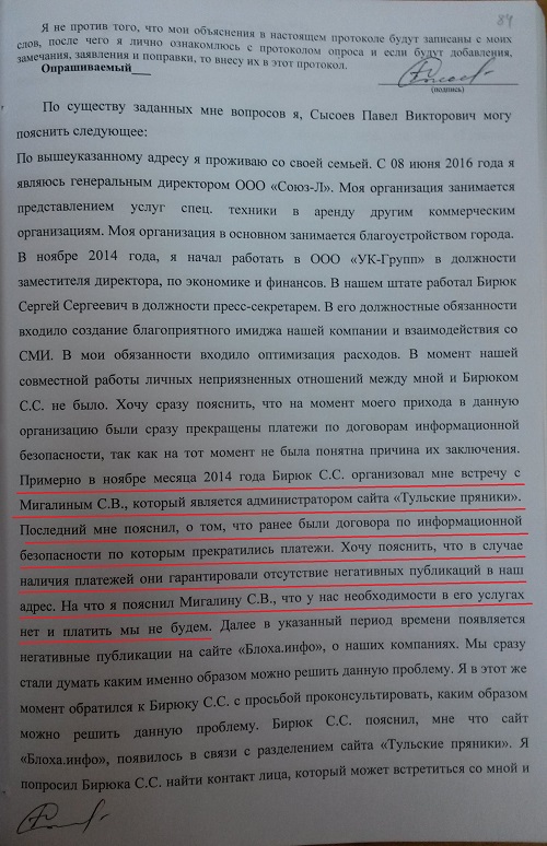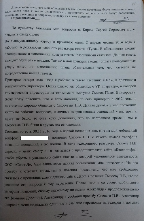Ну а сейчас, вернемся к пресловутой «угрозе размещения третьей статьи», информацию о которой старший следователь Алымов С.В. изложит 30.11.2016 г., а получит от Бирюка С.С. только … 01.12.2016 года после 01.30 вот из этого объяснения.