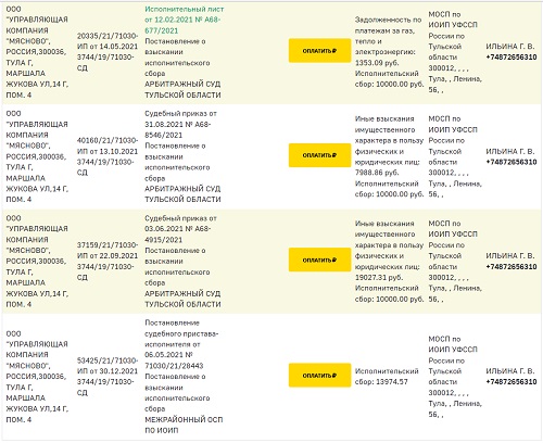 Судя по сайту Федеральной службы судебных приставов это не единственный долг ООО «УК «Мясново»: