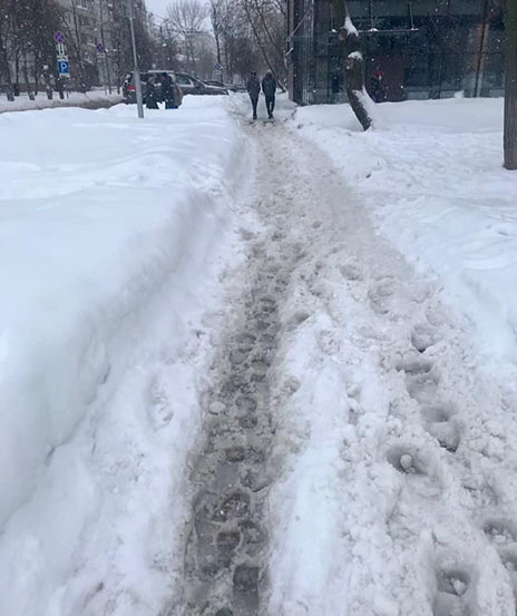 Вчера [15 января] на улице Лейтейзена две вереницы мощных грейдеров навстречу друг другу, по пять машин! Красивейшее зрелище! Но что они убирали??? Карманы для стоянок машин все завалины снегом теми же грейдерами. А к пешеходному переходу через улицу ведёт тропиночка из жижи снега, соли и реагентов….
