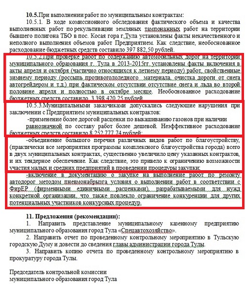 Для того, что бы подтвердить длительность и системность этих нарушений, а значит и то, что они уже давно не являются тайной ни для начальника управления по организации закупок и контролю за ценообразованием администрации города Тулы Елены Биржевой, ни для курирующего её первого заместителя главы администрации города Тулы Ильи Беспалова, приведем ряд документов из поста «Прессы Свободной».