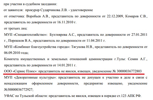И что арбитражное дело № А68-544/11 было вовсе не в интересах защиты прав ООО «Сервис плюс»!