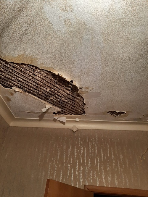 Новые трещины и сколы в штукатурном покрытии потолка. Прогресс разрушений на лицо, и не надо быть экспертом в строительстве чтобы это не увидить. Другое дело наши «эксперты», которые купили себе диплом или вообще не имеет специального образования, и за деньги (большие деньги) берутся рассуждать о разрушениях и делать бредовые выводы о проливе которой был 5лет назад. А если рухнет перекрытие, причина это последствия землетрясения в Латинской Америке .