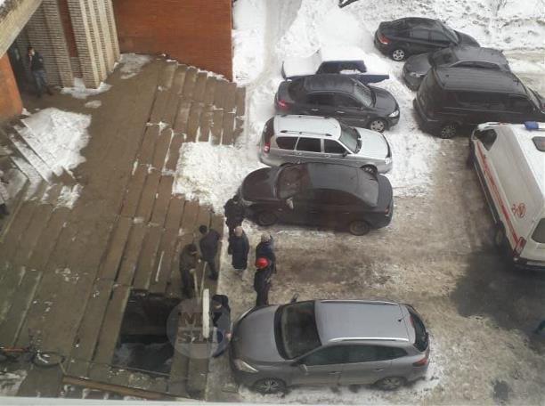 Как выяснилось на месте, глубина провала составляет около 2-2,5 м. Местные жители рассказали Myslo, что давно жаловались на шаткие ступеньки, но мер никто не принимал.