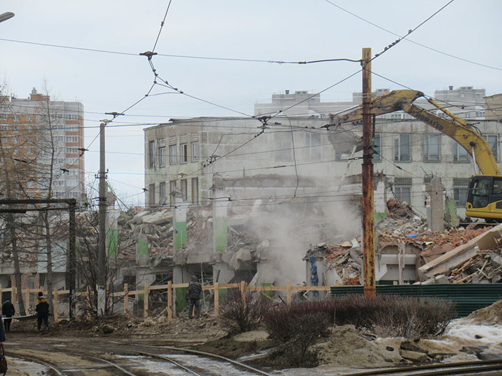 Недавно наш канал писал о том, что территория недалеко от Московского вокзала будет отдана под застройку жилыми домами. Речь шла о ряде площадок, например, на ул. Путейской или Ф. Смирнова. На обозначенной площадке находится, а скорее уже находился, комплекс зданий бывшего завода ТОЗТИ — Тульского опытного завода технологического инвентаря, введенный в эксплуатацию в 1966 году. Почему находился, а потому что начаты работы по сносу комплекса зданий. Работы идут даже в выходные. Площадка огорожена, а специальная техника рушит здания. Часть уже снесена.