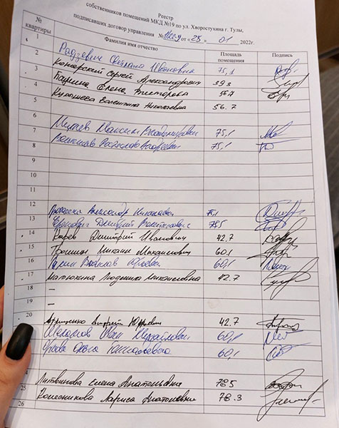 В январе жители проводили общедомовое собрание, где практически единогласно приняли решение перейти к другой управляющей компании «Тульский двор».