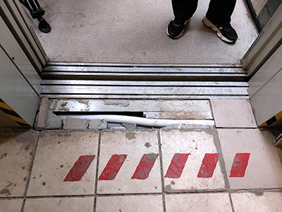 На одном из этажей над дверью висит оборванная проводка, а на другом два года не заделывается дыра в шахту возле лифта, рассказывают жители.