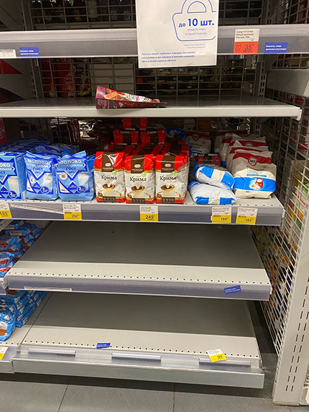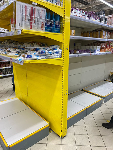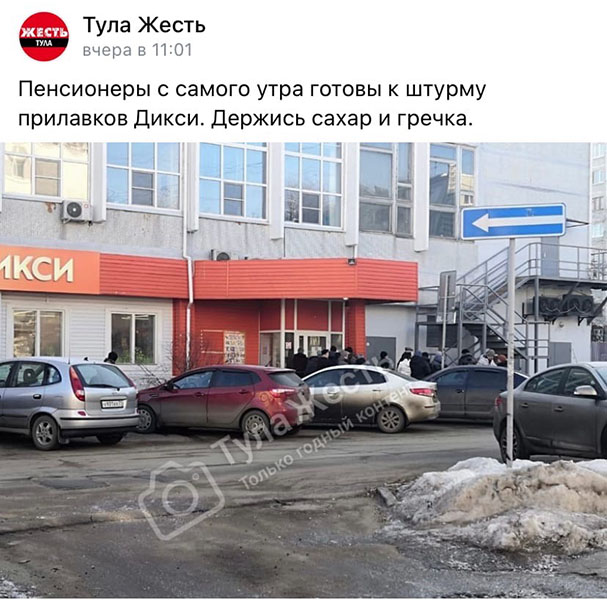 Фото прилавков из магазинов, в вечернее время, посещённые после рабочего дня. Также фото из Тульского паблика — очереди перед открытием магазина. Это безумие нужно остановить.