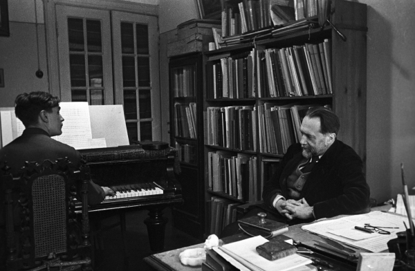 Композитор Николай Мясковский занимается у себя дома со студентом Германом Галыниным. 1944 г. Фото: Public Domain