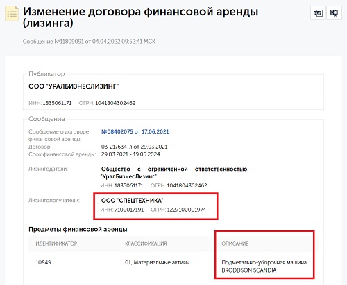 Главе городской администрации продемонстрировали машины совсем другой компании — ООО «Спецтехника». Ибо согласно договорам, они находятся в лизинге именно у этой фирмы.