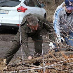 На фото ИА «Тульские новости»: глава городской администрации за уборкой