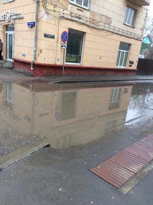 А это пересечение улицы Советской и Бухоновского переулка. Волны от проезжающих автомашин.