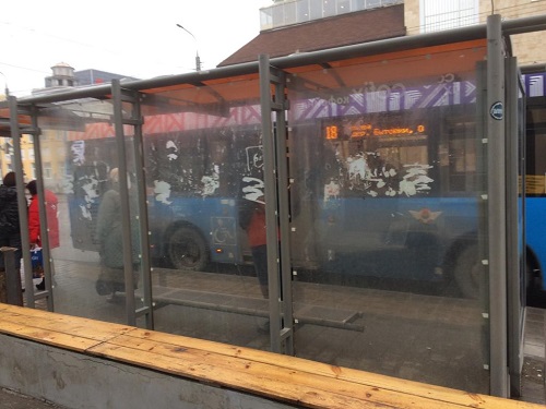 Остановка общественного транспорта на пересечении проспекта Ленина и улицы Советской. Рядом с областной и городской администрациями. Уж если она в таком заляпанном состоянии, то что ждать от остальных?