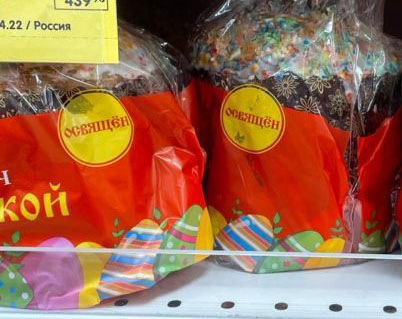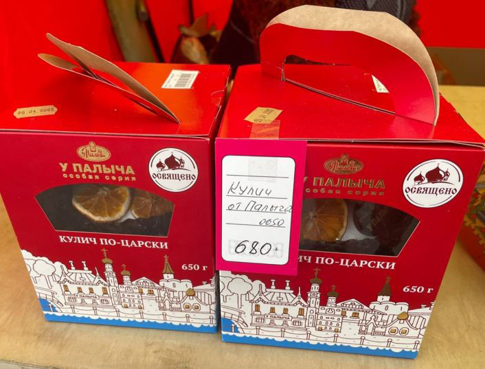 Такие куличи корреспондент «Тульских новостей» встретил в магазине «Верный» и в пекарне «У Палыча». Однако, по словам Тульской епархии, пасхальные снеди могут быть благословлены только в Великую Субботу.