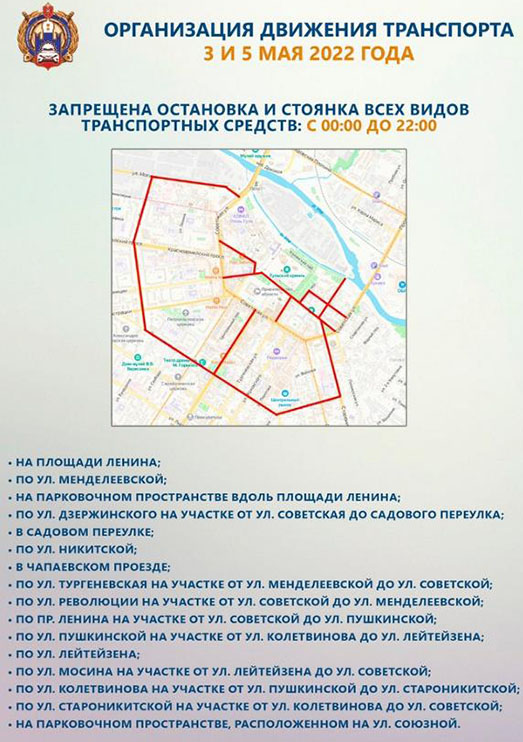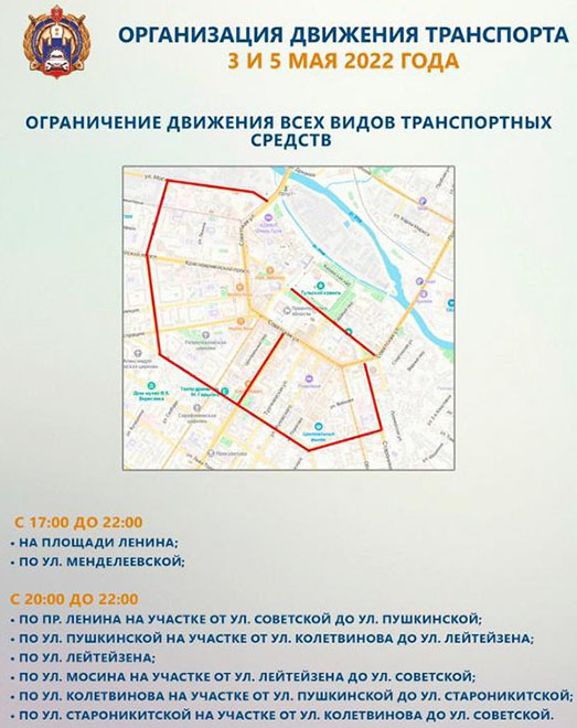 3 и 5 мая с 17.00 до 22.00 ограничат движение всех видов транспортных средств: