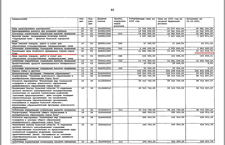 Но это не помешало городской думе осенью 2020 года, причем во время пандемии, почти в полтора раза увеличить «социальные выплаты» почетным гражданам Тулы. Более того, гордепы не просто увеличили ежемесячные выплаты с 20 тысяч рублей до 29 тысяч, но и ввели ежегодную индексацию этих выплат.