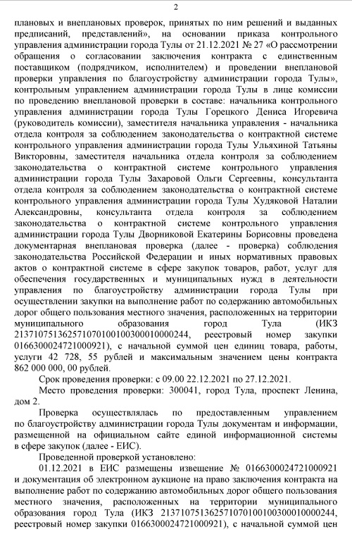 Дело в том, что между городским управлением по благоустройству и «САХ» было заключено несколько муниципальных контрактов с конца декабря 2021 г. по конец января 2022 г. на выполнение работ по содержанию тульских дорог и объектов благоустройства.