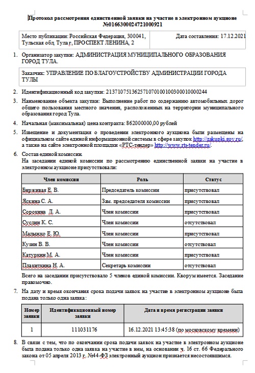 Или члены комиссии всё-таки знали о том, что единственный участник закупки по ГОДОВОМУ контракту № 3710751362522000001 на 862 000 000 рублей находится в состоянии реорганизации с последующей ликвидацией?