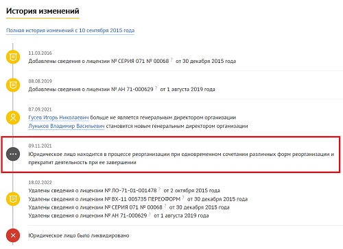 Причем все операции по отсоединению, присоединению и ликвидации присоединенных юридических лиц провернули в течение одного дня — 18.02.2022.