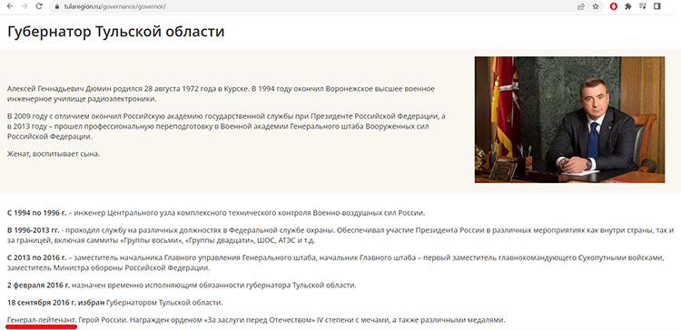 Вчера мы обратили внимание, что сайт tularegion.ru (портал кабмина региона, если что) в разделе «Губернатор Тульской области» называет первое лицо этой самой области генерал-лейтенантом, хотя у того уже несколько дней на мундире по три большие звезды на каждом погоне.