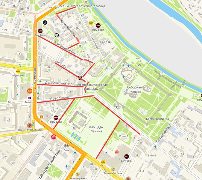 - по ул. Революции на участке от ул. Советской до Крестовоздвиженской площади;