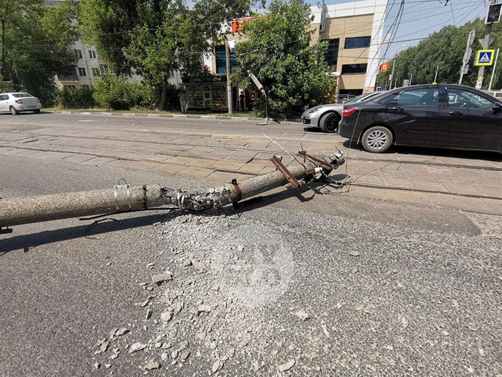 Если обратите внимание, то таких гнилых столбов по Туле стоит видимо — невидимо.. И дело не только в том что трамвай зацепил пантографом. Нормальный столб должен выдерживать такие перегрузы. Просто столбы надо менять своевременно. Хорошо без жертв обошлось.
