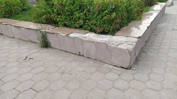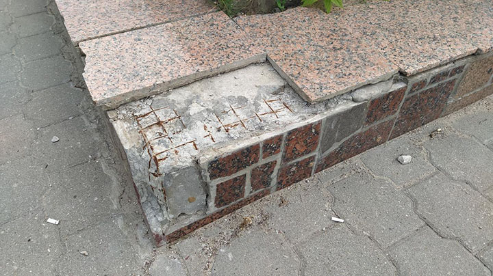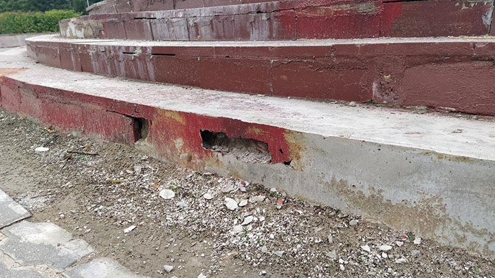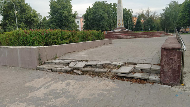А теперь к делу. К прозе жизни. Начнем с хорошего. К стеле вопросов нет. Стоит, красавица, глаз радует. Вторая хорошая новость: перед 9 мая таки починили перила из нержавейки. На этом всё, хорошего больше ничего не осталось.