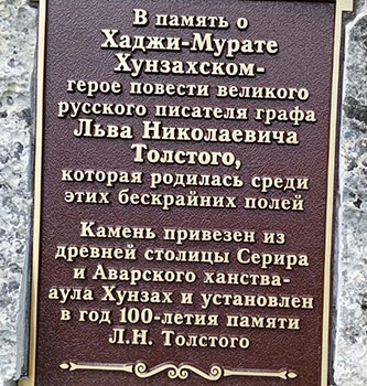 Камень назвали в честь Хаджи-Мурата, а рядом, на другом камне, разместили металлическую памятную табличку. Однако недавно на самом камне Хаджи-Мурата неизвестными лицами была установлена другая табличка, поменьше, текст которой полностью повторяет первую.
