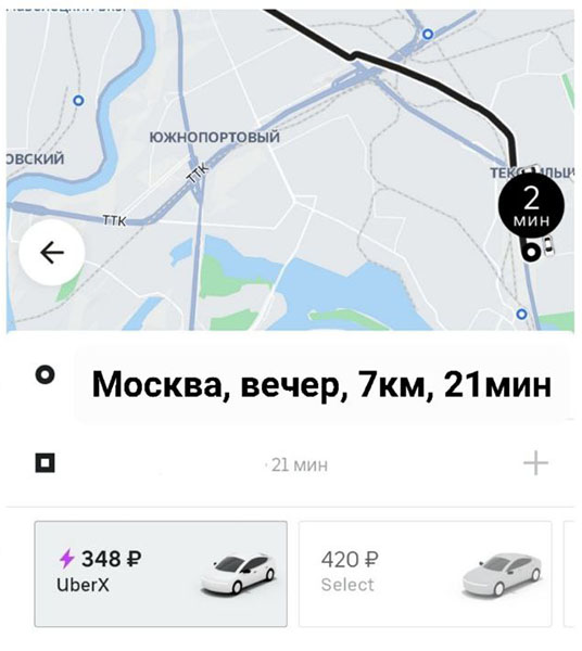 Вот личный пример, поездка в Туле в вечернее время, 7 км пути, 30 минут дороги, стоимость 400 рублей. Примерно в это же время, тоже 7 км, 20-минутная поездка на такси в Москве стоила 350 рублей.