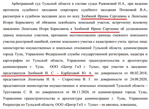 Поскольку пользование Яндексом и Гуглом пока еще не запретили, легко обнаружить, что Курбатова также была представителем Ирины Злобиной в судебном процессе по ее иску. в арбитражном суде.