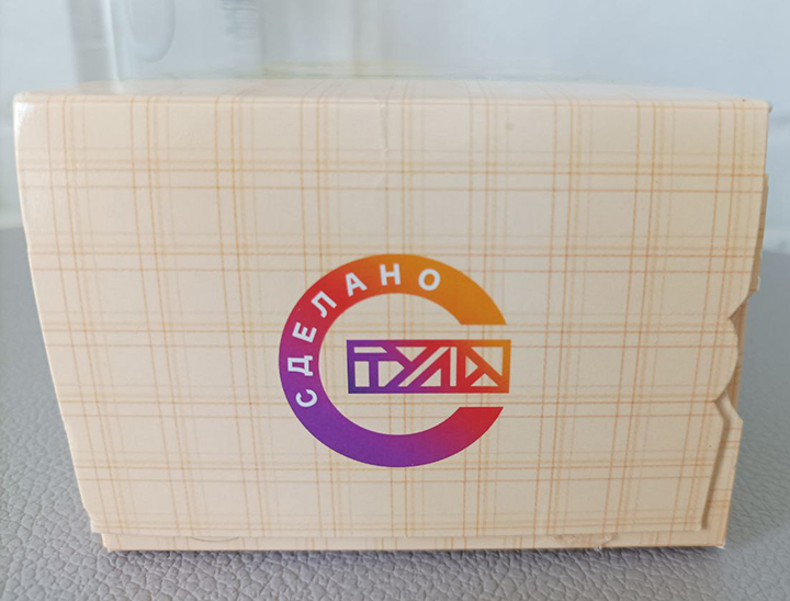 На коробке с торца — знак, очевидно, свидетельствующий, что продукт имеет прямое отношение к городу оружейников.