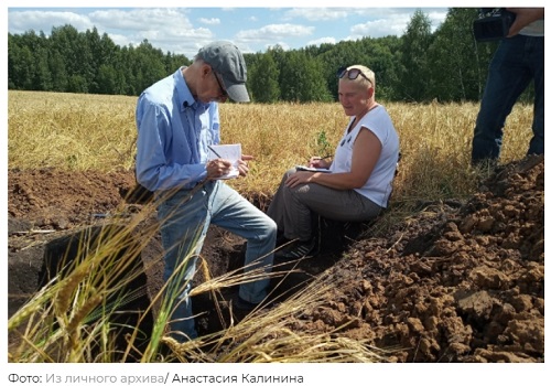 Пока археологи аккуратно, сантиметр за сантиметром снимают и просеивают культурный слой, добираясь до «материка», почвоведы, призванные им на помощь, работают широкими мазками. В нескольких ключевых местах рядом с предполагаемым местом битвы протянулись катены – условные линии, пересекающие основные элементы рельефа с цепочкой из 4-6 шурфов. Шурф — это двухметровые ямы, в стенах которых четко просматриваются разные виды почв: темный, богатый гумусом чернозем, белесоватые — серые лесные почвы. Внизу любой тип почв заканчивается рыжим суглинком, который у почвоведов называется почвообразующая порода, а у археологов гордо именуется «материк».