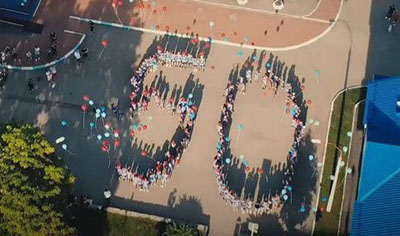 В клипе также показаны кадры из Новомосковска, где дети приняли участие во флешмобе. Юных спортсменов выстроили в цифру 50. В небо были запущены воздушные шары.