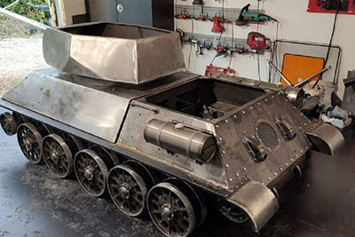 Накануне в Туле заметили небольшую копию танка Т-34, на которой местный житель проехался по парку и до ресторана «Вкусно – и точка». Тульская служба новостей связалась с ним и выяснила, что в городе собираются начать мелкосерийное производство необычного транспорта.