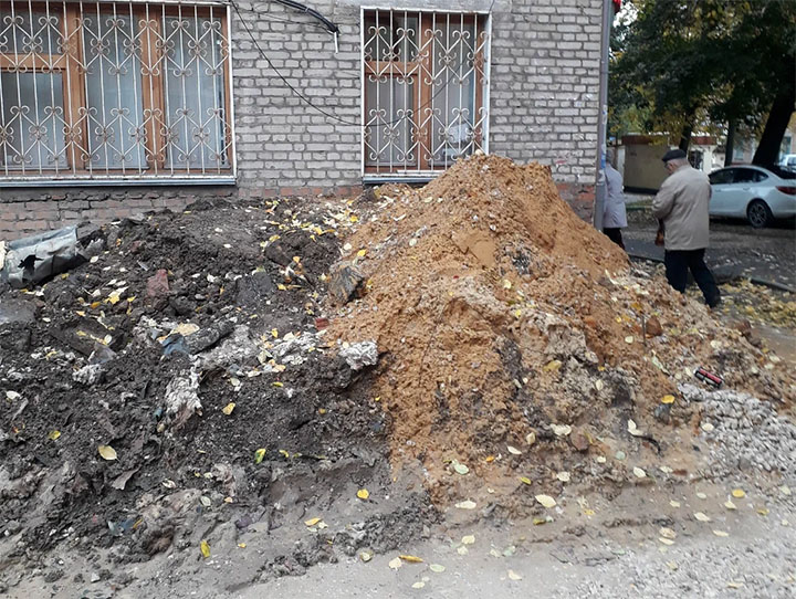 Экскаваторы вскрывают новый асфальт, отбойными молотками сбивают тротуарную плитку.