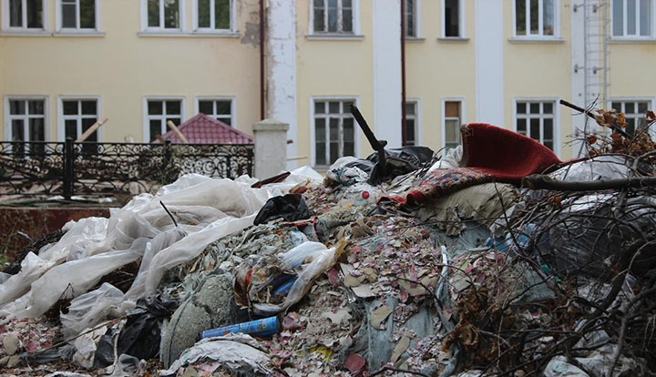 И к октябрю 2021 г., таким образом, были завершены демонтажные работы. Казалось бы, вовсю шел монтаж инженерных сетей, велась отделка фасада, устанавливали даже новые окна. Рабочие занимались и черновой внутренней отделкой.