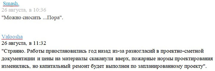 А между тем, на ремонт этого учреждения культуры было выделено более 200 млн. «народных» рублей. Может быть, «тугрики» увели, раз с ремонтом -полный затык? И подрядчик какой-то, как пишут тульские СМИ, нехороший оказался. А в подрядчиках, между прочим, подвизалось ООО «Интекостройсервис». Именно эта фирма прославилась в Туле и при «заморозке» ремонта вечерней школы на улице Рихарда Зорге. Школа до сих пор в вегетативном SOSтоянии.