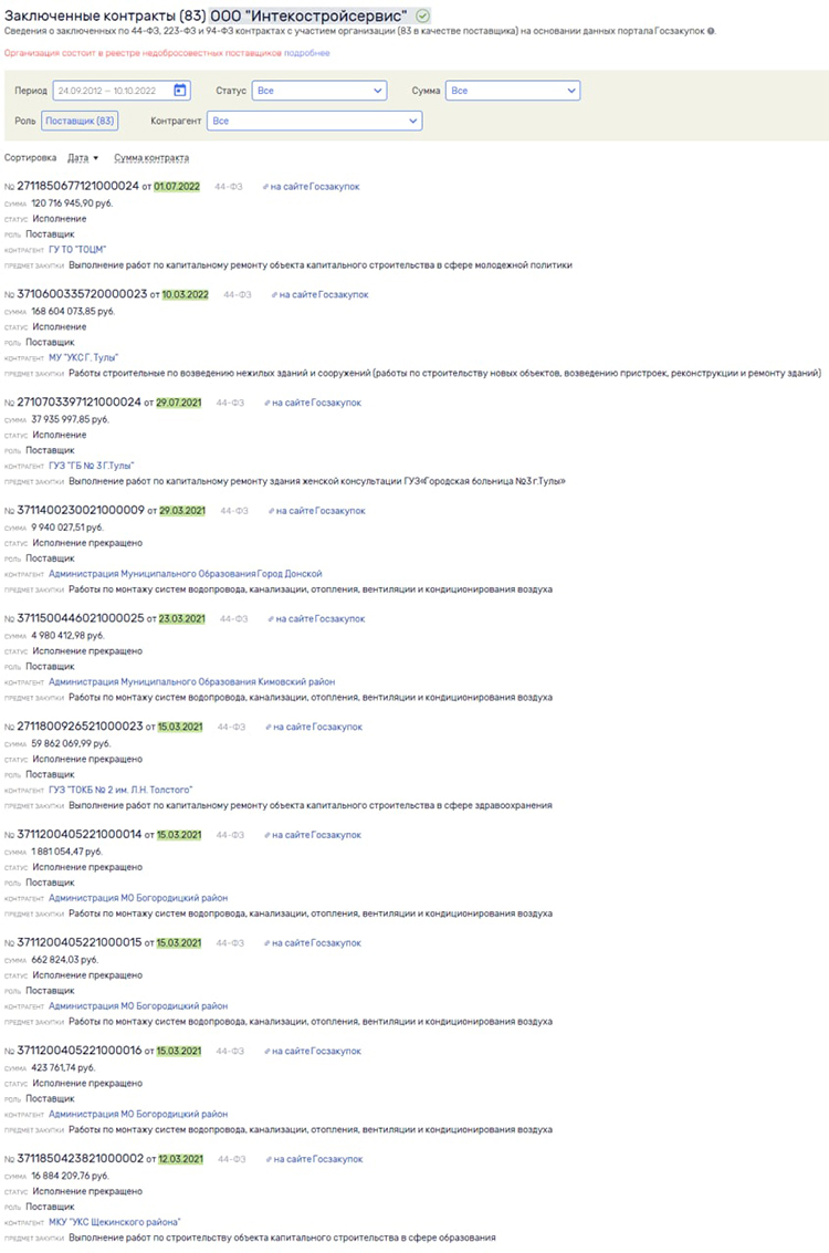 А еще у этой конторы десятки судебных процессов, но отсидев «в кустах», ООО «Интекостройсервис» снова получает контракты.