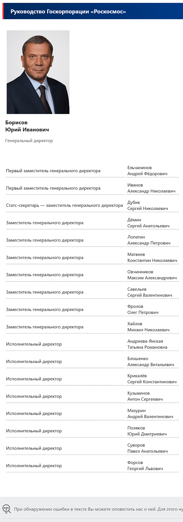 А почему никто не задается вопросом, почему господин Шерин не появился на сайте роскосмоса, как руководство? ) Уверены, что ушел туда?