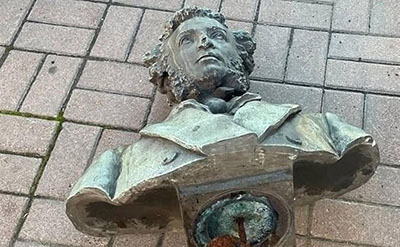В Киеве снесли бюст Александра Пушкина, установленного перед входом в здание Национального транспортного университета. Этот памятник — близнец тульского Пушкина, который стоит в Пушкинском саду. Они оба были изготовлены скульптором Р. Бахом на петербургской фирме Берто в 1899 году, в честь столетия великого русского поэта.