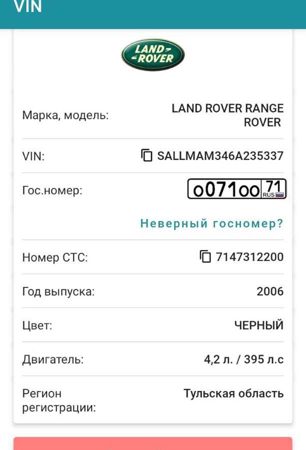 «В справке о ДТП у нас записан VIN автомобиля Никитина. Мы посмотрели в приложении для автомобилистов — согласно VIN, на этом Range Rover вместо номера Т096ТТ71 должны быть регистрационные знаки О071ОО71. В том же приложении можно узнать, что на машине висит долг в 750 тысяч рублей и несколько ДТП. С нашими двумя — уже пять. Как он вообще ездит?! Насколько мы понимаем, и инспектора ДПС и приставы всё это знают, но ничего с ним сделать не могут», — рассказал Олег.