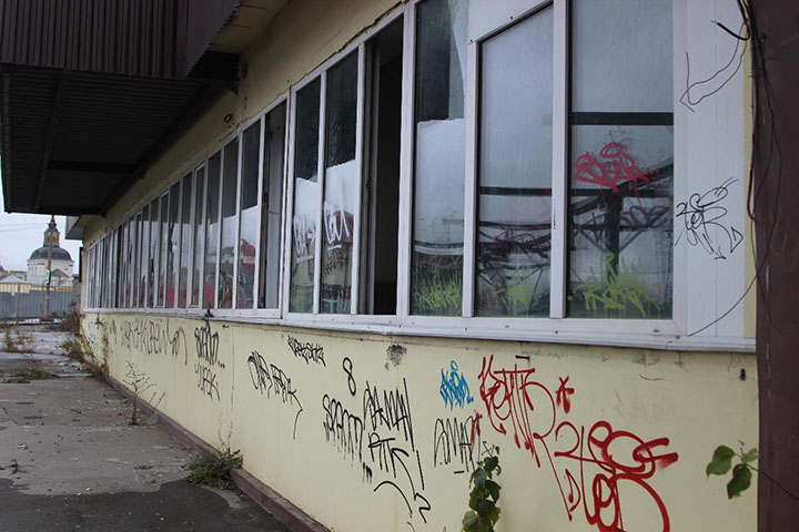 Меньше чем за два года территория автостанции, расположенной напротив Музея оружия, превратилась в руины: загаженные помещения, исписанные стены, выбитые окна.