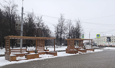 В Туле на Площади Победы установили два деревянных парклета за 770 тысяч рублей.