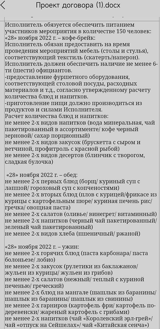 Второй лот на 900 тысяч рублей – организация питания. Это кофе-брейк, обед и ужин 28 ноября.