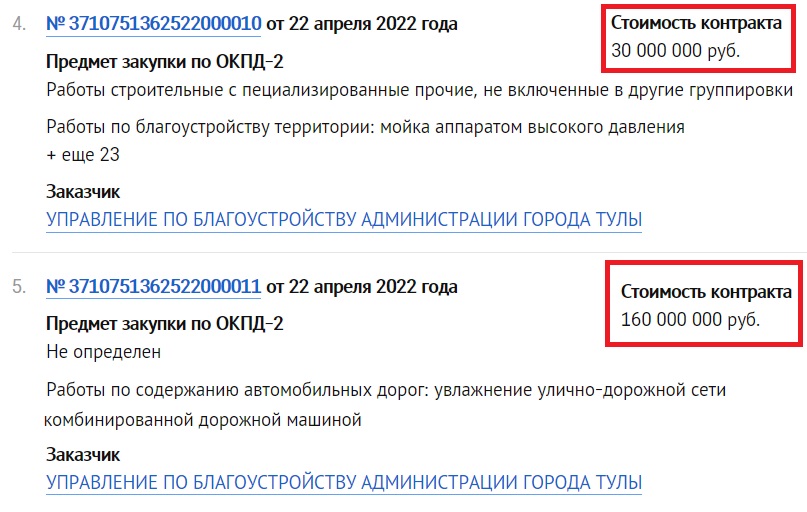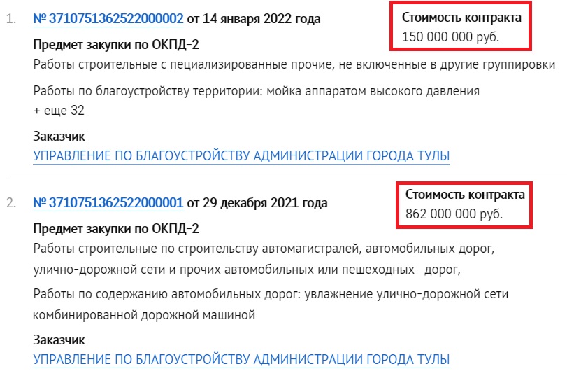 Оказывается ООО «Спецавтохозяйство» выиграло в течение этого года 5 конкурсов на 739,8 млн. рублей, будучи единственным участником этих мероприятий.